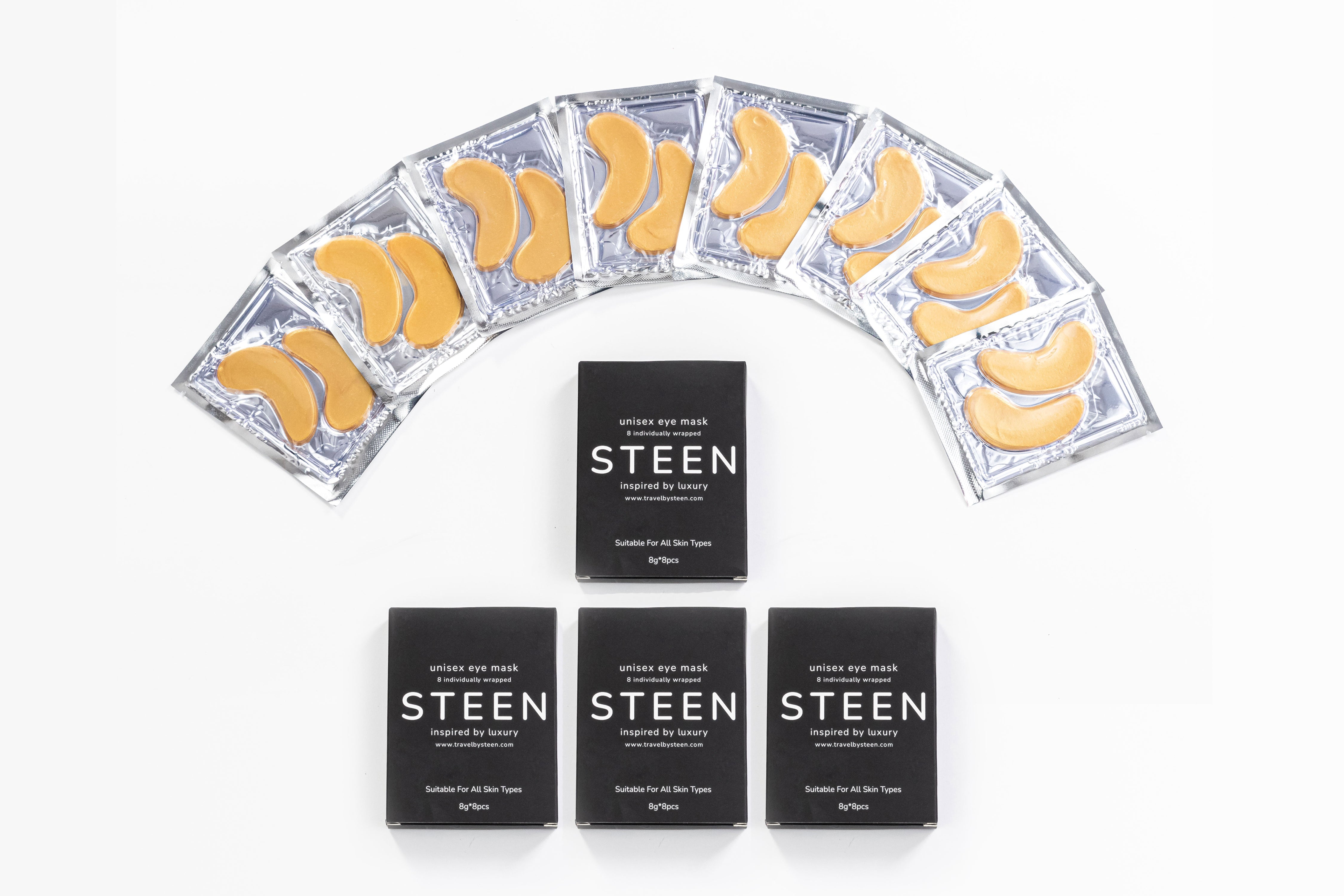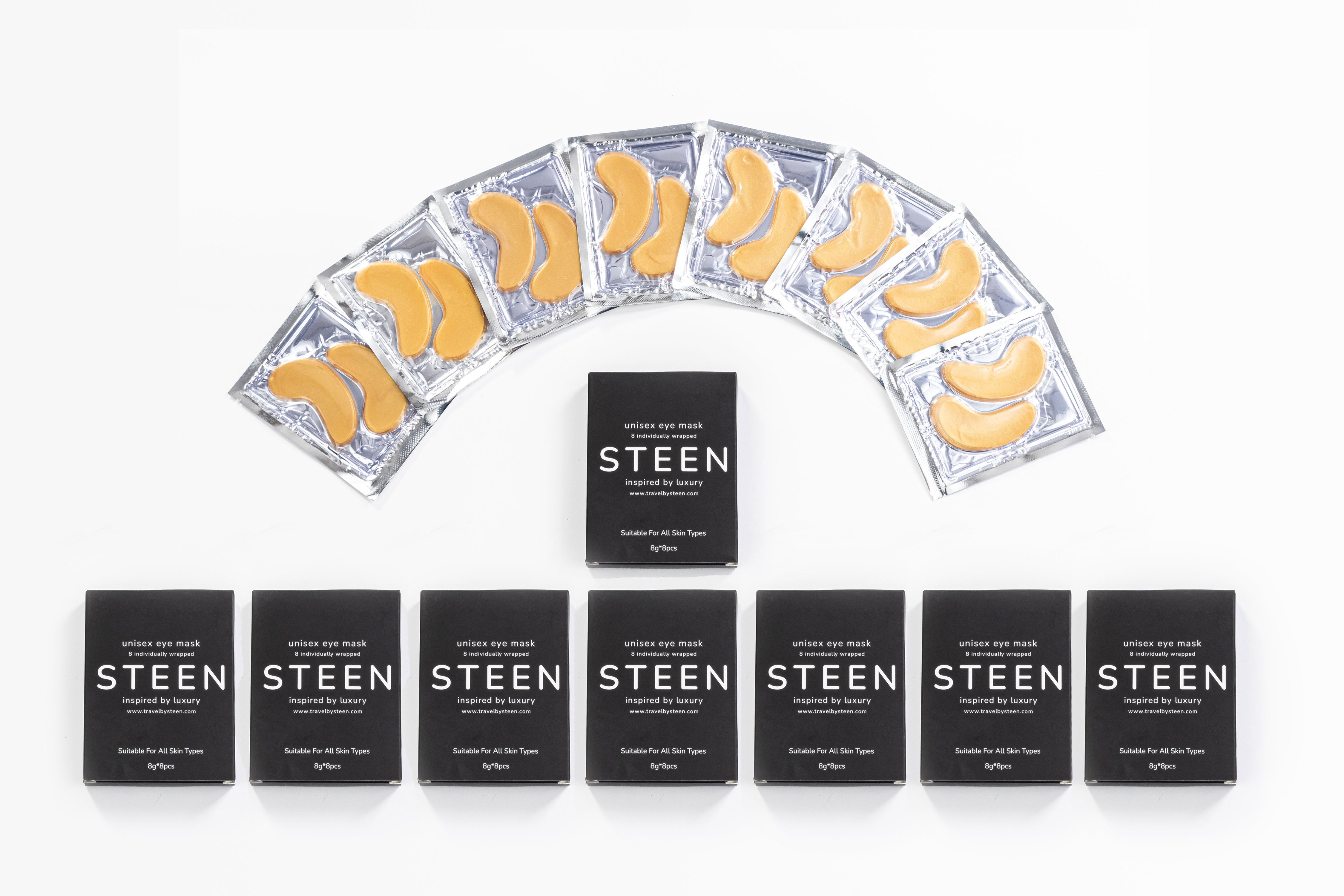 The STEEN nutrition for your under eye! Specially formulated to ensure your skin absorbs the nutrients and leaves your under eye feeling refreshed. The gold collagen under eye mask reduces puffiness, tired eyes, dark circles and minimizes the appearance of fine lines and wrinkles. Get the glow on the go! Perfect for travel and relaxation time.